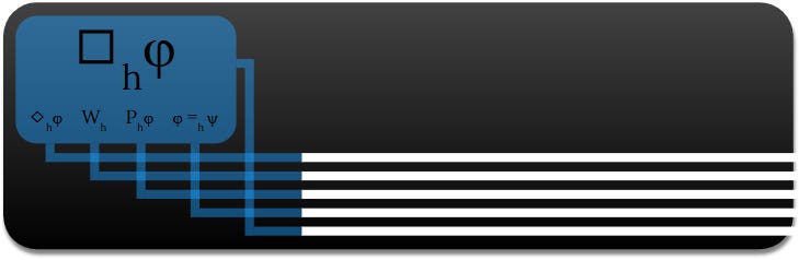 Instead of writing “□φ” and hoping the context disambiguates, h-Logic forces relativization on the necessity (□) and possibility (◊) operators, just like we do in epistemic modality, but everywhere.