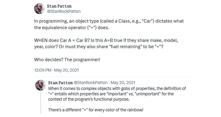 My motivation to push for new terms, and the use of h-Logic to “set-ify” premises, is because of patterns of discursive quicksand that I’ve seen haunting popular discourse, for decades, even among folks I’d expect to “know better”:
