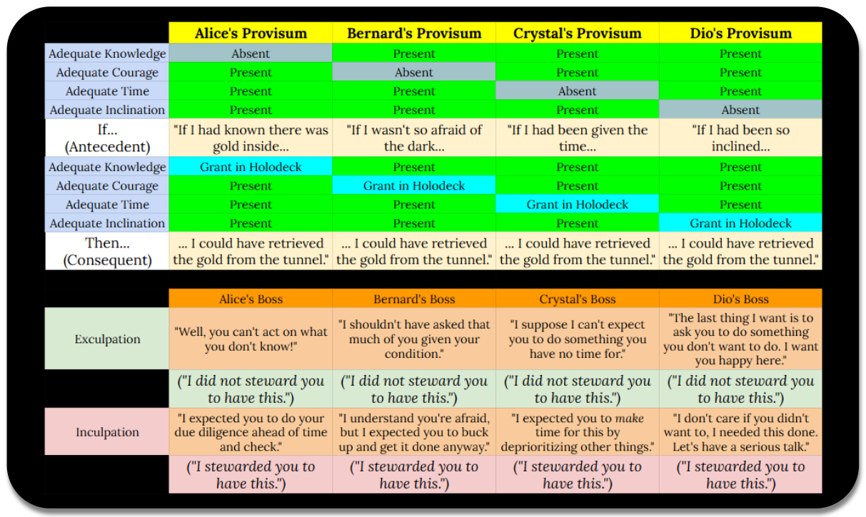 (Note: This all gives us license to smash “is” and “ought” together where they both express what follows from trusted or provisionally adopted expectations; the “supernormative ought” is just per the provisum you’re privileging, at which point Hume’s Guillotine rises between That One and the rest. You’ll see this “privileged provisum” pattern appear again and again as we explore more traditional philosophical issues.)