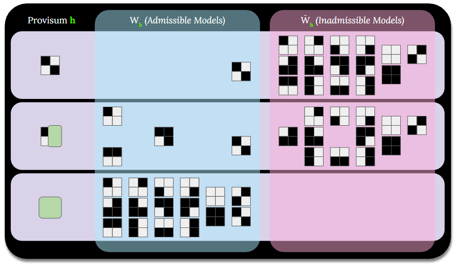 A: The provisum acts as a kind of “filter set,” winnowing down the number of admissible models, mathematical structures that satisfy all of the provisum’s expectations, hence why we are framing the provisum’s expectations as constraints: